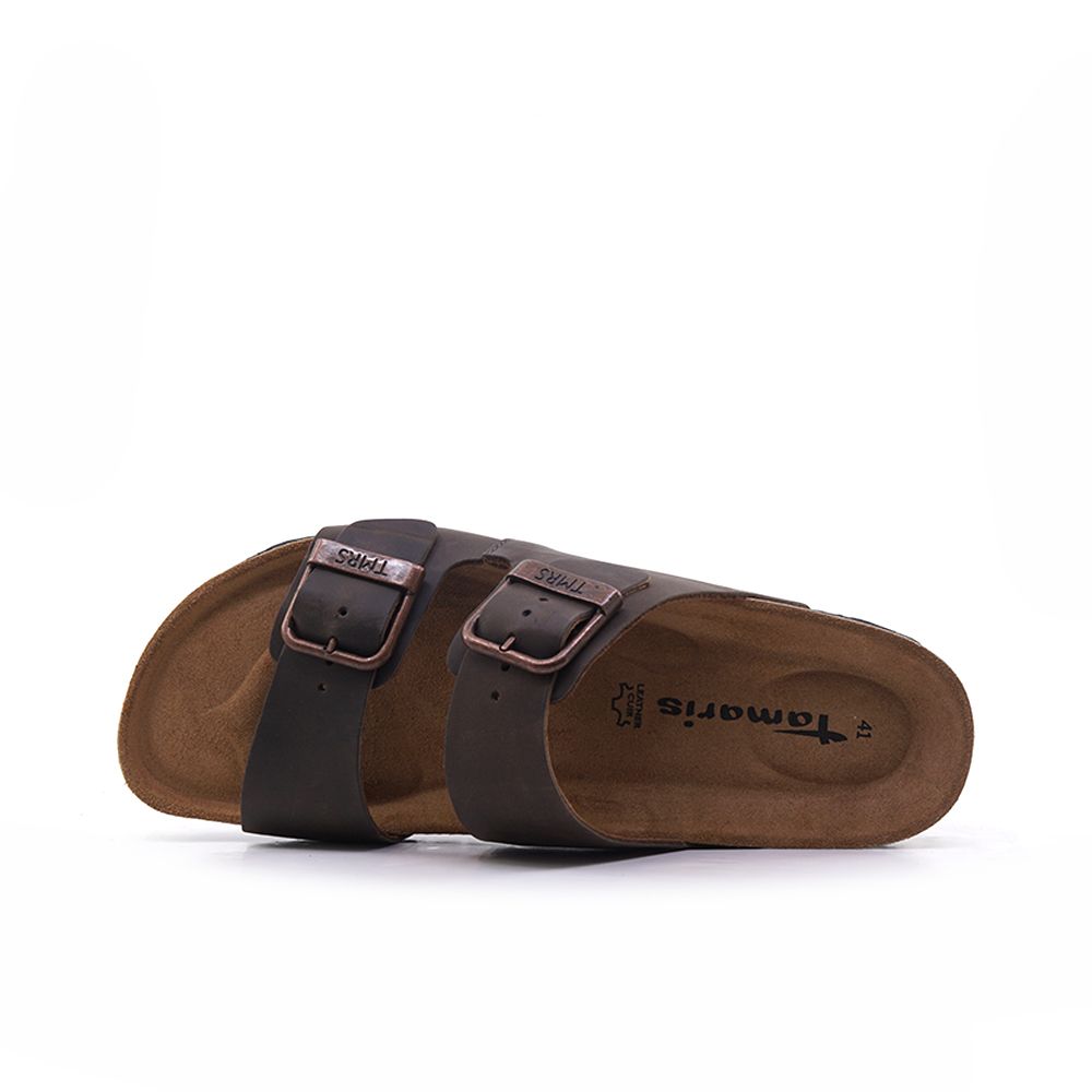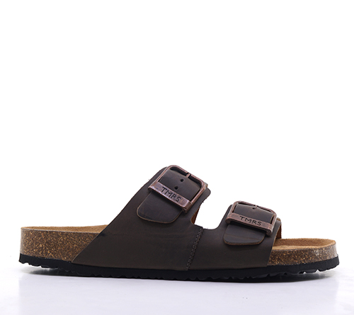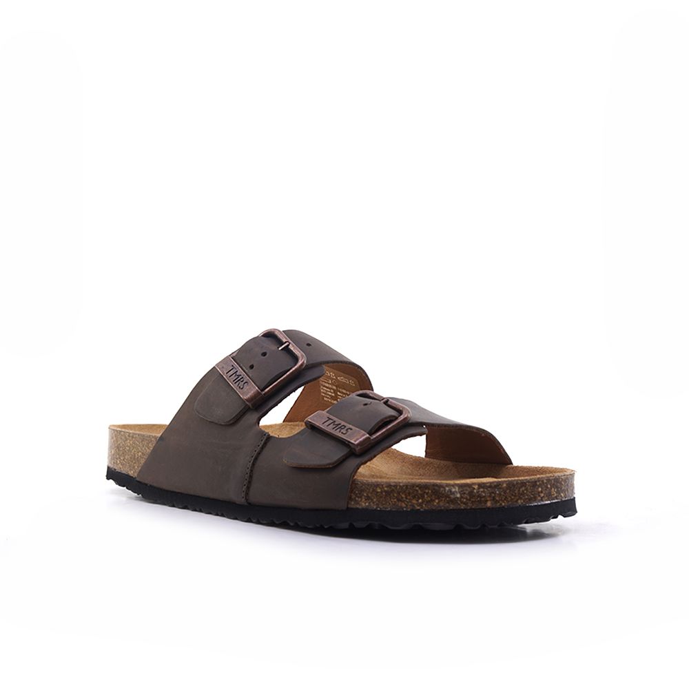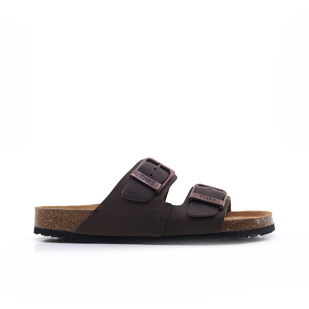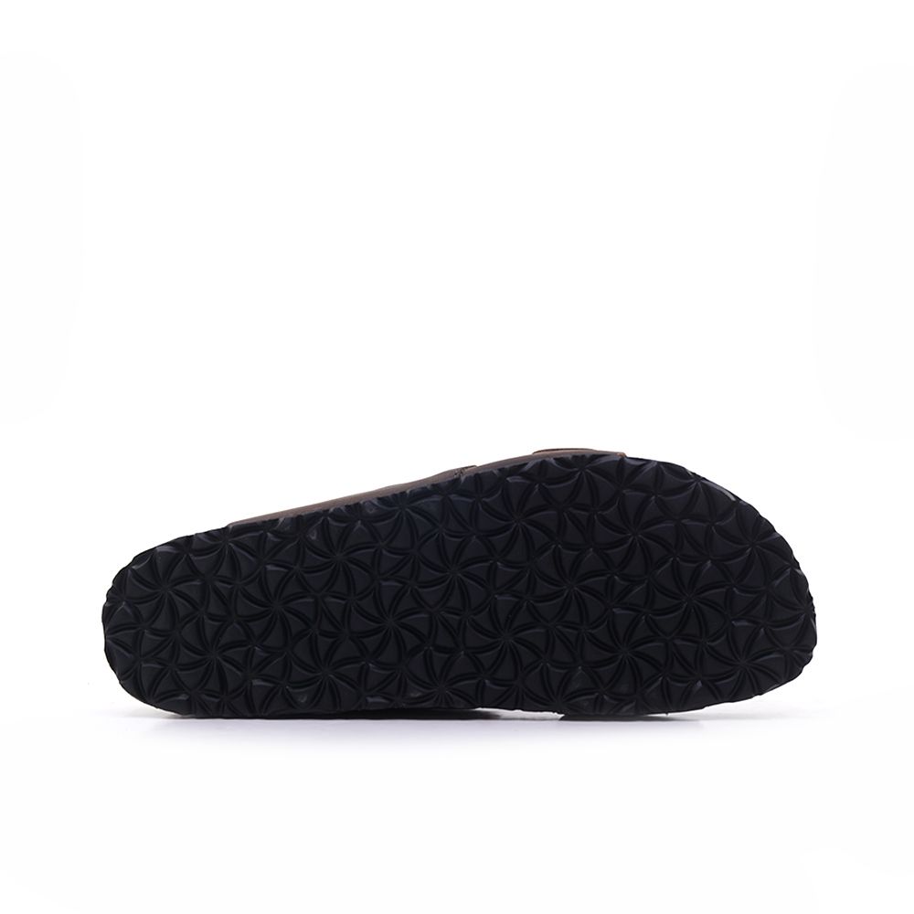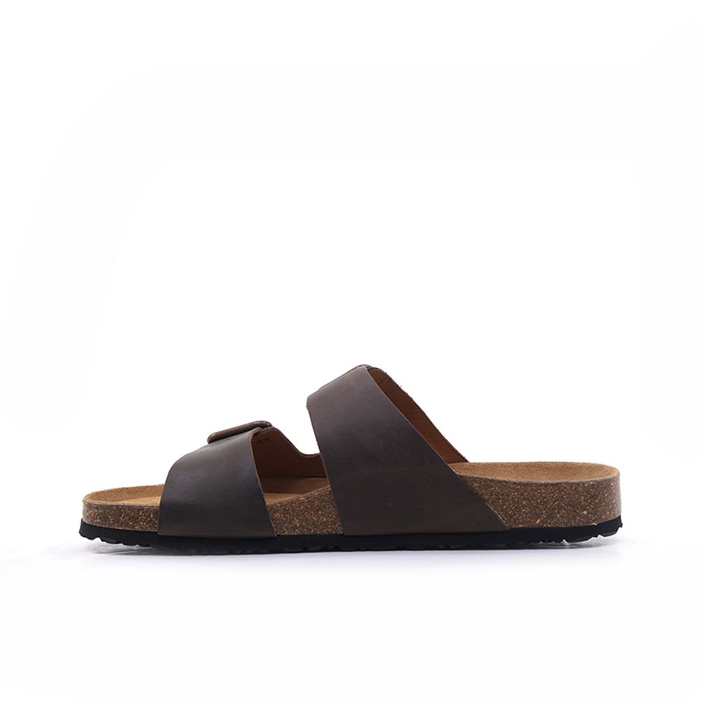 Σαγιονάρα απο δέρμα σε καφέ χρώμα με φαρδιά λουριά στο κουντεπιέ. Διαθέτει σταθερό και μαλακό πέλμα για άνετο και ξεκούραστο πάτημα και εξωτερική αντιολισθητική σόλα.