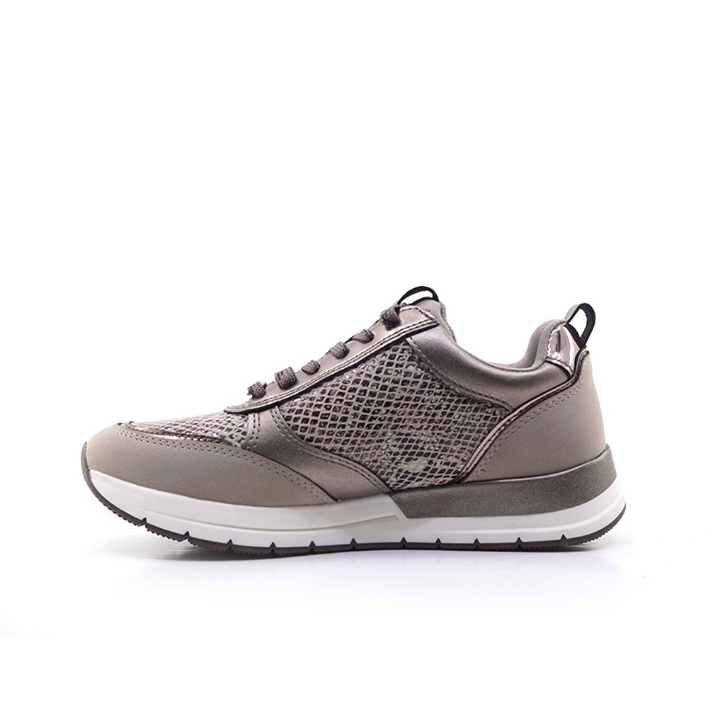 Γυναικεία casual παπούτσια Tamaris σε γκρι φίδι, φτιαγμένα απο συνθετικό δέρμα υψηλής ποιότητας. Η κατασκευή του σε συνδυασμό με την αντιολισθητική σόλα το καθιστούν κατάλληλο για τις καθημερινές σας περιπλανήσεις.