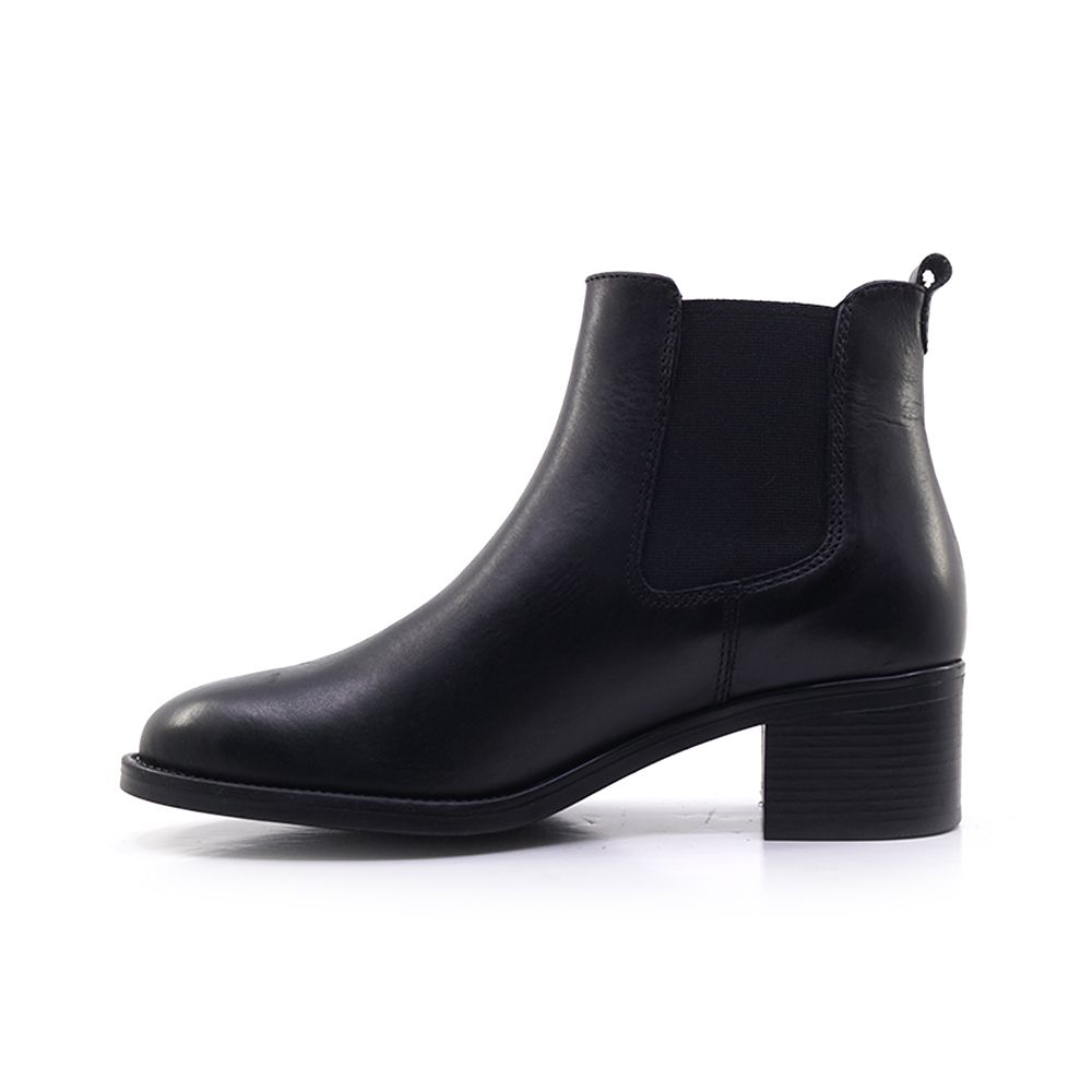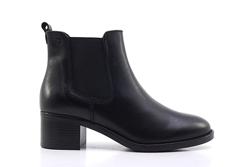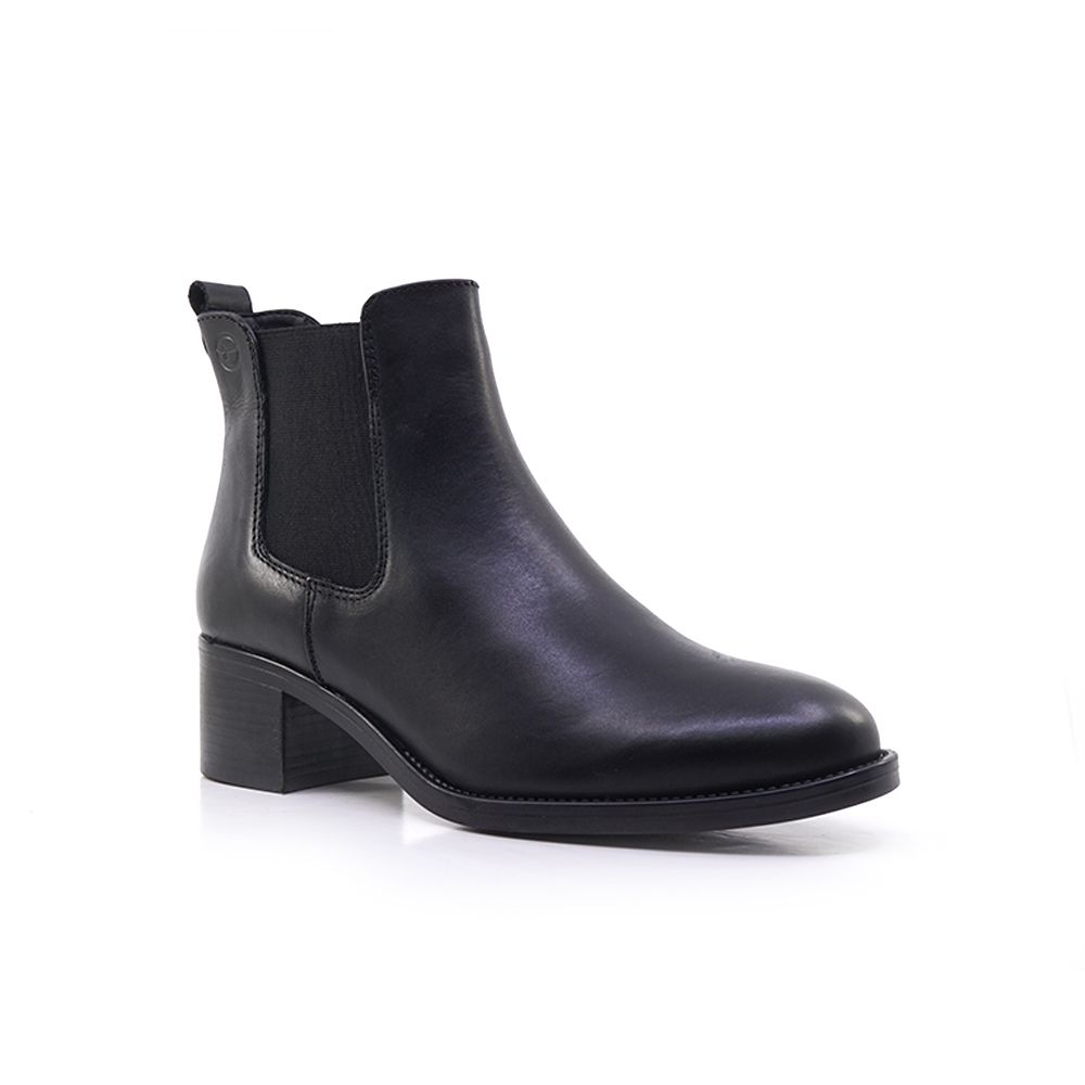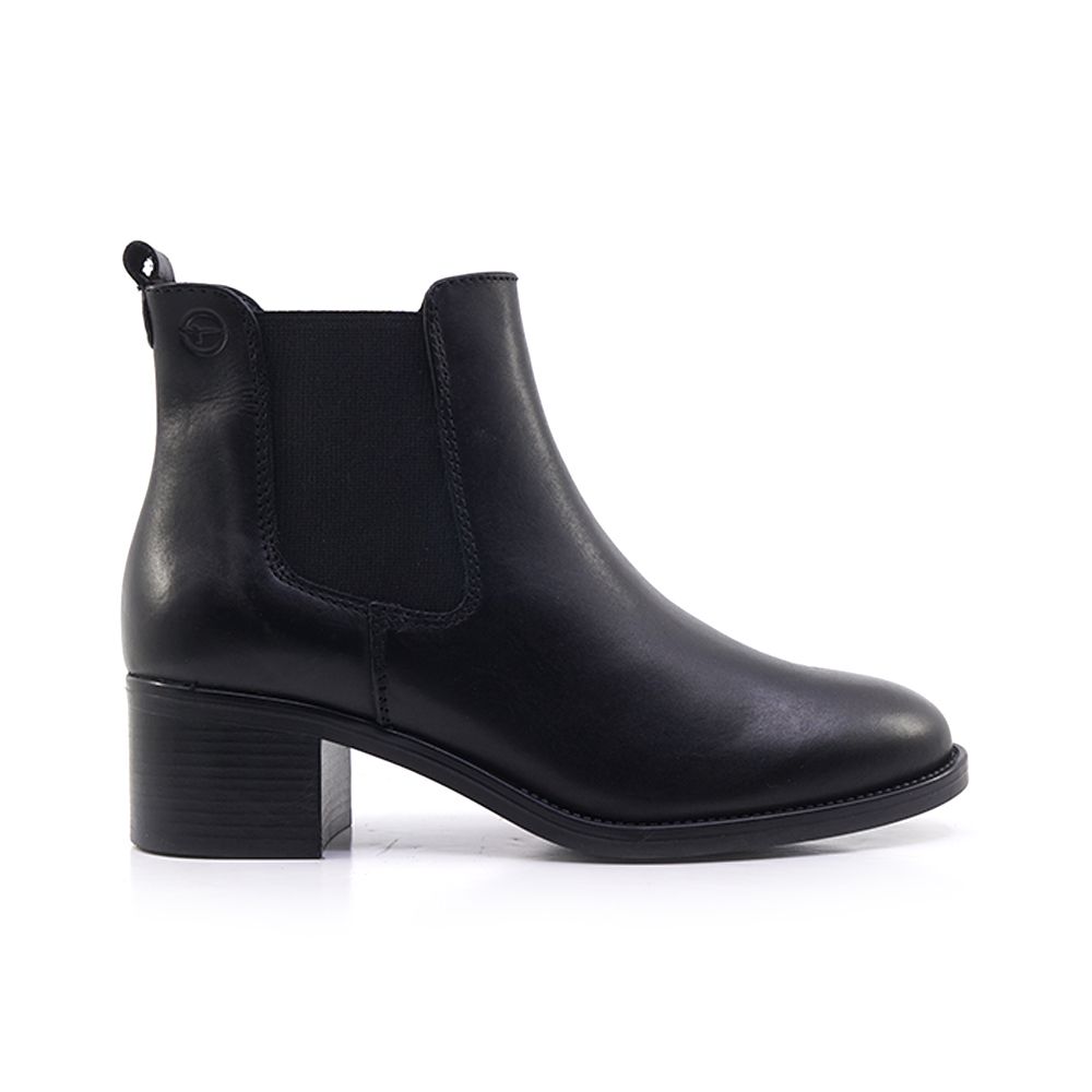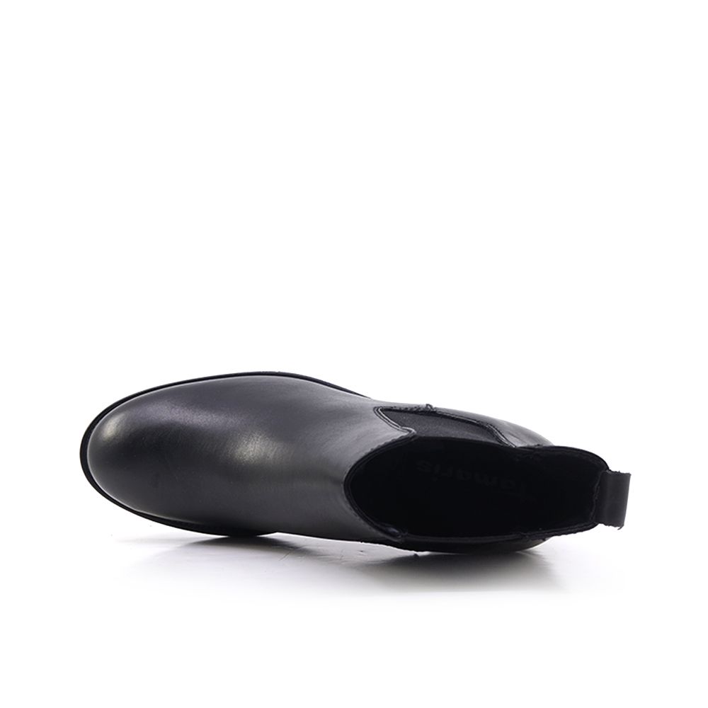 Γυναικεία μποτάκια Tamaris από δέρμα σε μαύρο χρώμα, ελαστική σόλα και τακούνι 4,5cm. Η αντιολισθητική σόλα και το σταθερό τακούνι υπόσχονται ασφάλεια και σταθερότητα σε κάθε σας βήμα.