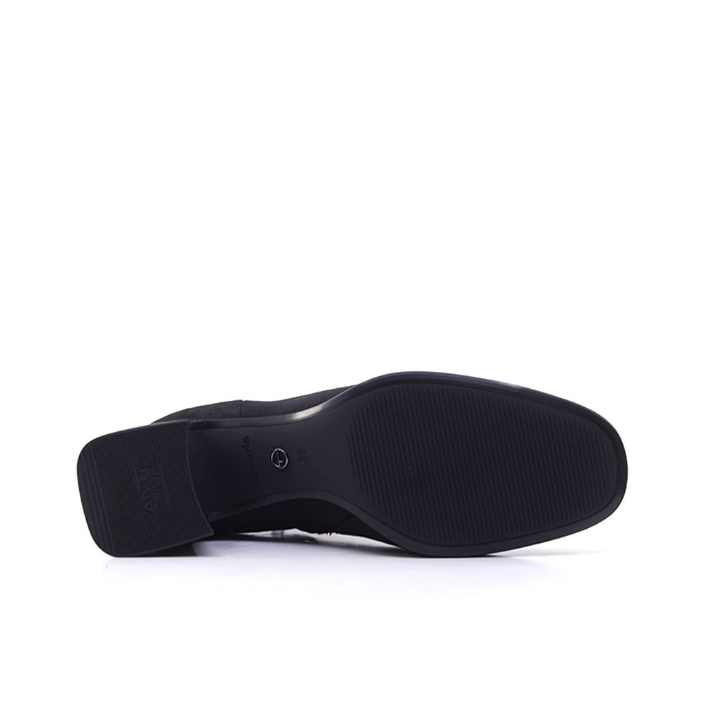 Γυναικεία μποτάκια Tamaris από συνθετικό δέρμα suede σε μαύρο χρώμα και τακούνι 5,5cm. Η αντιολισθητική σόλα και το σταθερό τακούνι υπόσχονται ασφάλεια και σταθερότητα σε κάθε σας βήμα.