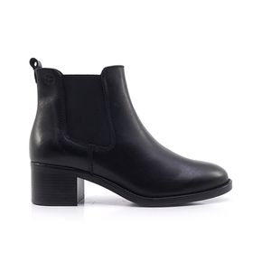 Γυναικεία μποτάκια Tamaris από δέρμα σε μαύρο χρώμα και τακούνι 4 cm. Η αντιολισθητική σόλα και το σταθερό τακούνι υπόσχονται ασφάλεια και σταθερότητα σε κάθε σας βήμα.