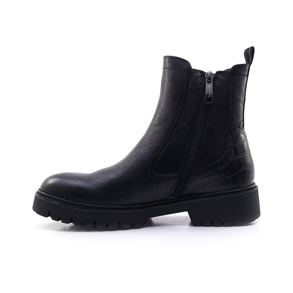 Γυναικεία μποτάκια Tamaris από δέρμα σε μα΄υρο χρώμα και τακούνι 4 cm. Η αντιολισθητική σόλα και το σταθερό τακούνι υπόσχονται ασφάλεια και σταθερότητα σε κάθε σας βήμα.
