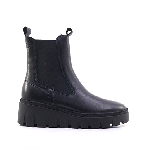 Γυναικεία μποτάκια Tamaris από δέρμα σε μαύρο χρώμα, ελαστική σόλα και τακούνι 5,5cm. Η αντιολισθητική σόλα και το σταθερό τακούνι υπόσχονται ασφάλεια και σταθερότητα σε κάθε σας βήμα.