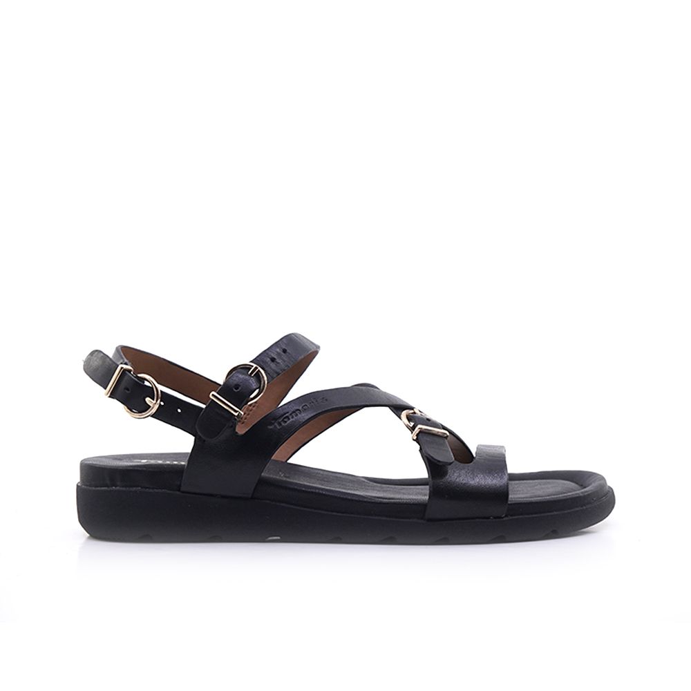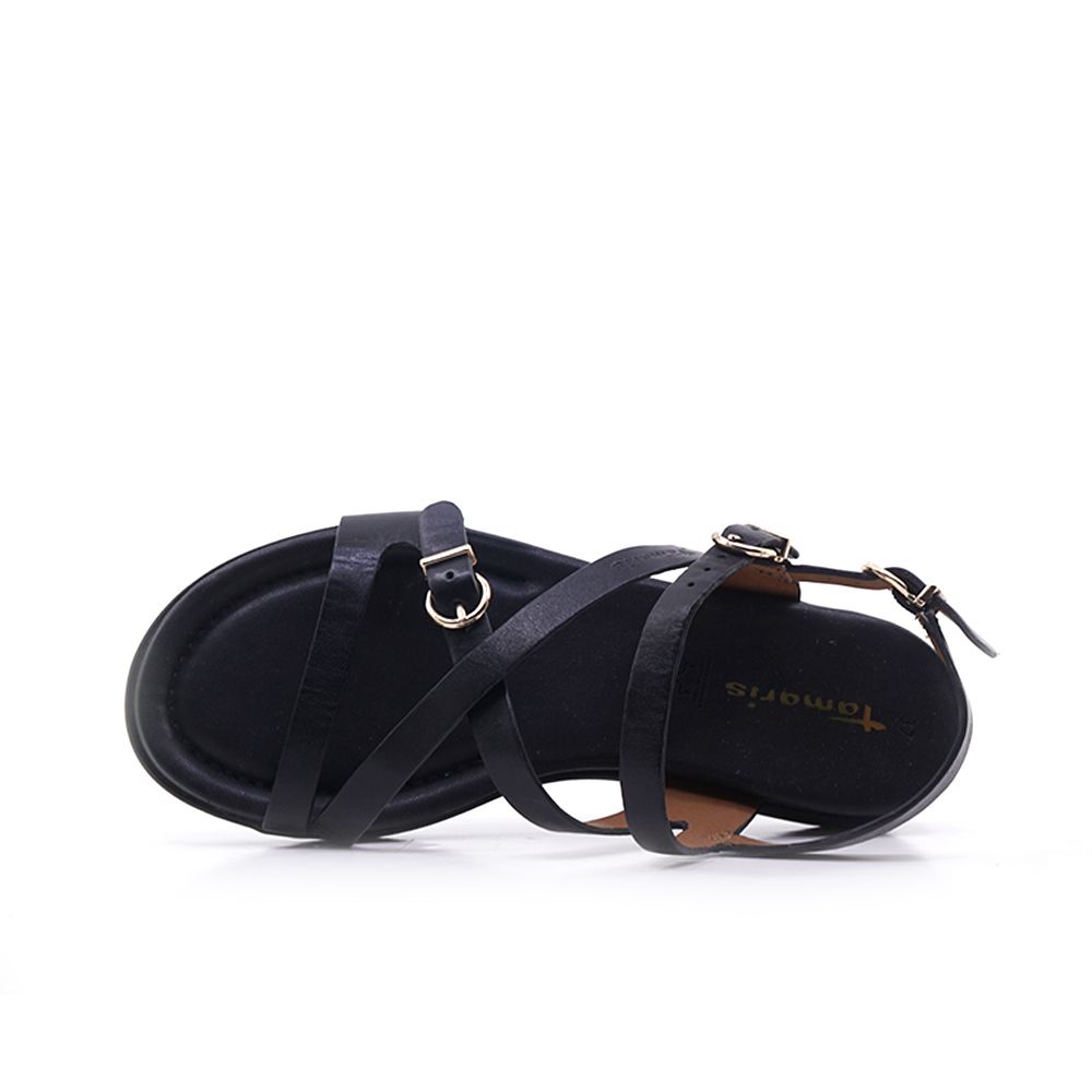 Γυναικεία πέδιλα Tamaris απο δέρμα, με τακούνι στα 5cm. Σε μαύρο χρώμα και λουριά που αγκαλιάζουν το κουντεπιέ για σταθερή εφαρμογή και στυλ, συνδυάζονται εύκολα και αποτελούν βασική επιλογή για γοητευτικές εμφανίσεις κάθε ώρα της ημέρας.