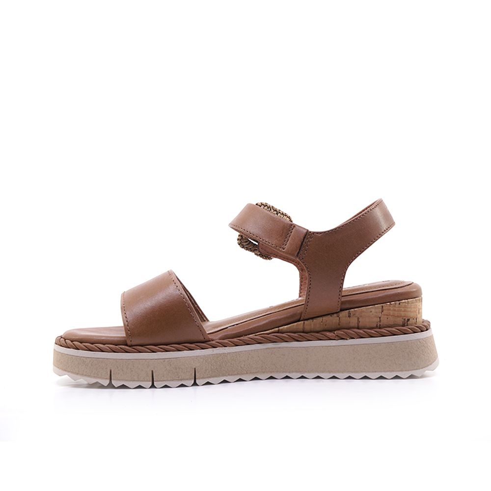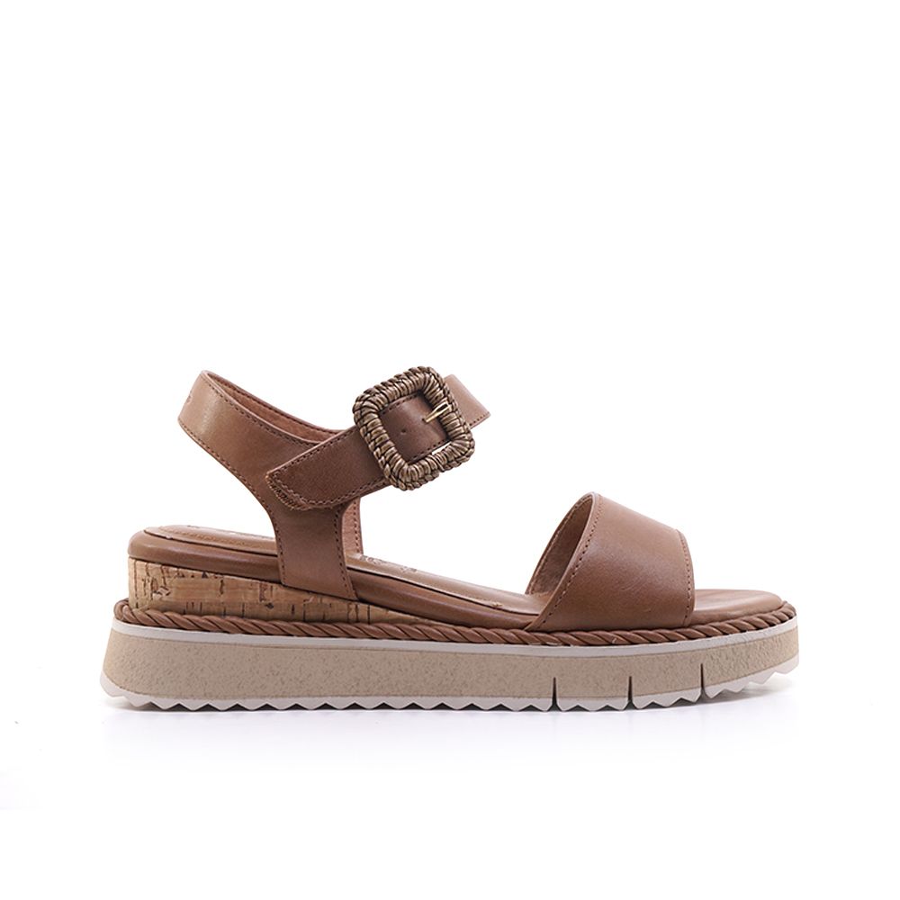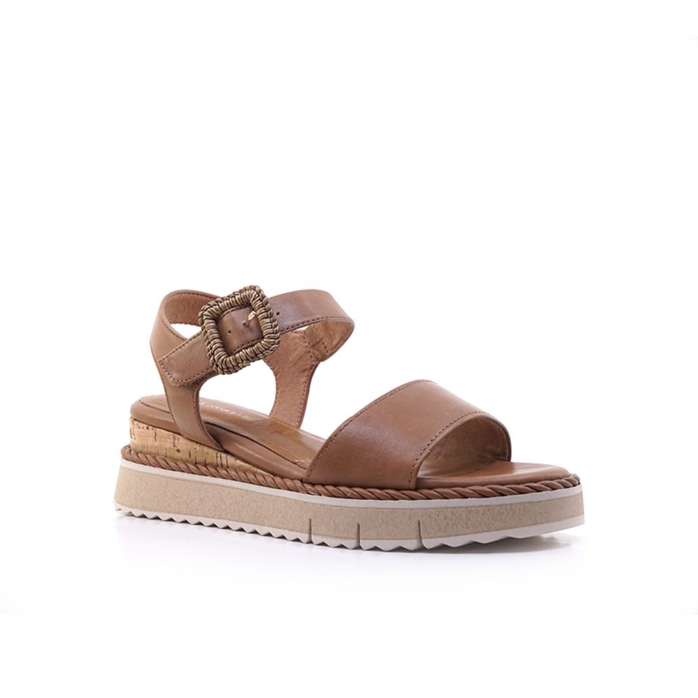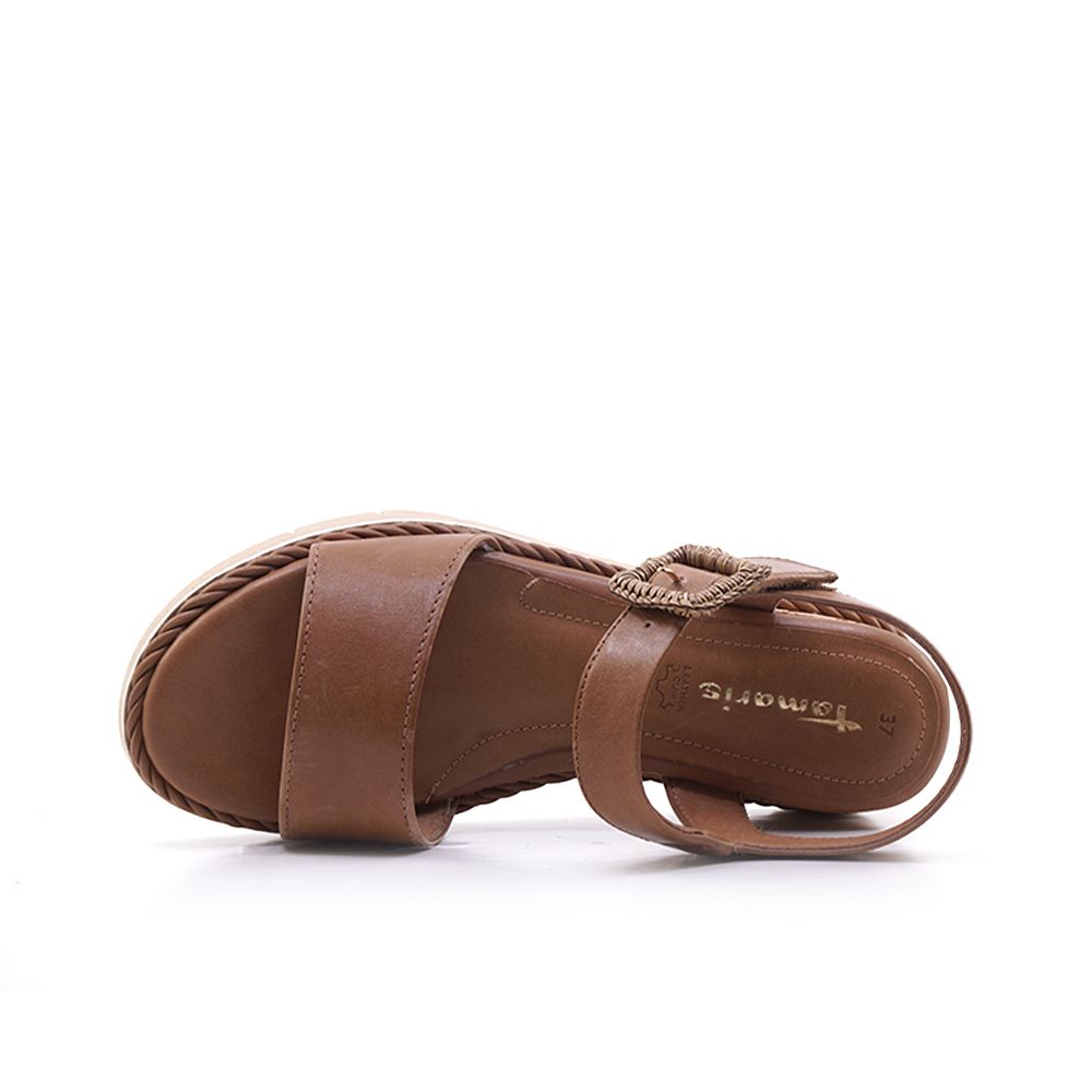 Γυναικείες πλατφόρμες Tamaris απο δέρμα, με τακούνι στα 5cm. . Σε κονιάκ χρώμα και φαρδιά λουριά που αγκαλιάζουν το κουντεπιέ για σταθερή εφαρμογή και στυλ, συνδυάζονται εύκολα και αποτελούν βασική επιλογή για γοητευτικές εμφανίσεις κάθε ώρα της ημέρας.