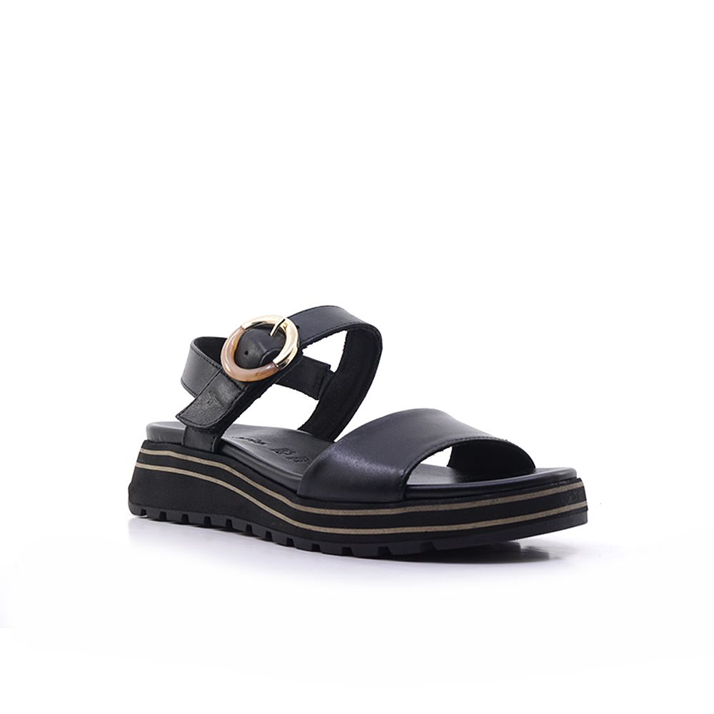 Γυναικείες πλατφόρμες Tamaris απο δέρμα, με τακούνι στα 4cm. Σε μαύρο χρώμα και φαρδιά λουριά που αγκαλιάζουν το κουντεπιέ για σταθερή εφαρμογή και στυλ, συνδυάζονται εύκολα και αποτελούν βασική επιλογή για γοητευτικές εμφανίσεις κάθε ώρα της ημέρας.