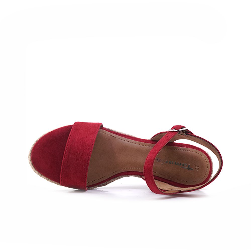Γυναικείες πλατφόρμες Tamaris απo ύφασμα, με τακούνι στα 8 cm. Mαλακός πάτος με τεχνολογία Touch it προσφέρει ομοιόμορφη κατανομή του βάρους κατά μήκος του πέλματος για το πιο ξεκούραστο περπάτημα. Σε κόκκινο χρώμα και φαρδιά λουριά που αγκαλιάζουν το κουντεπιέ για σταθερή εφαρμογή και στυλ, συνδυάζονται εύκολα και αποτελούν βασική επιλογή για γοητευτικές εμφανίσεις κάθε ώρα της ημέρας.