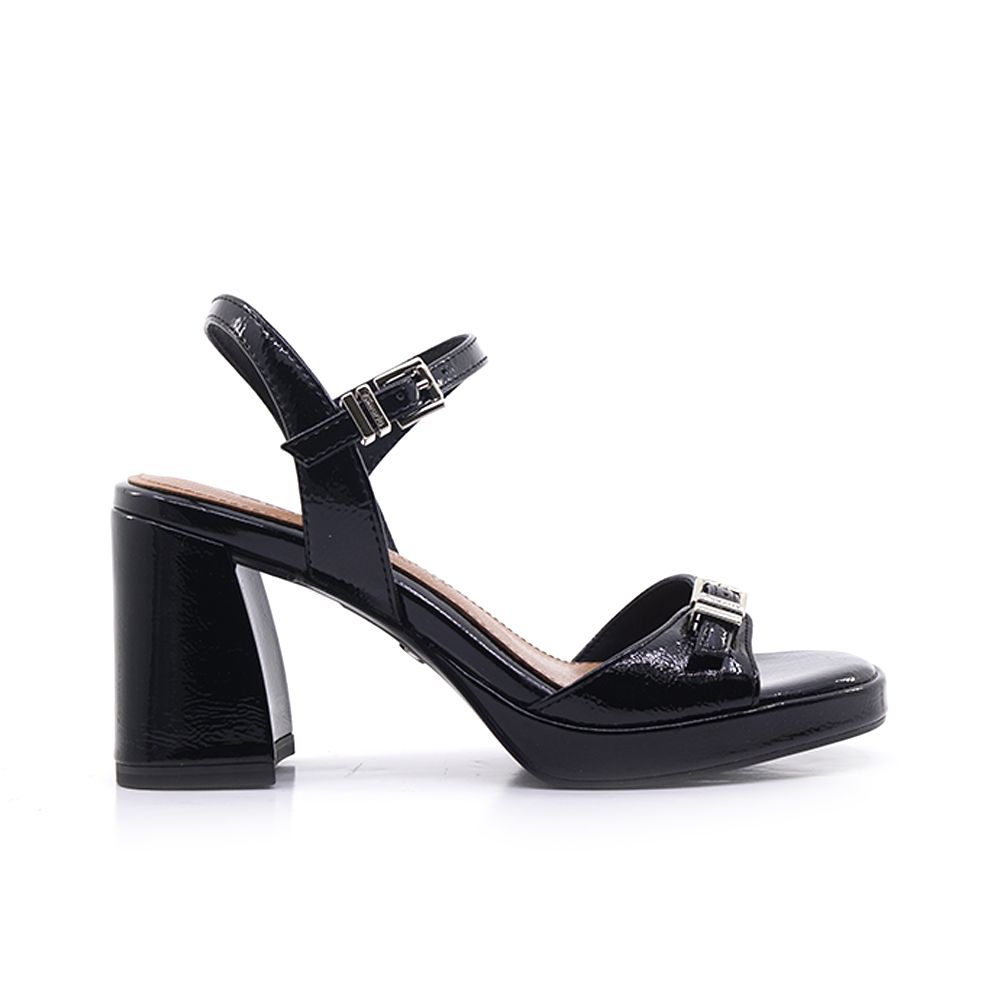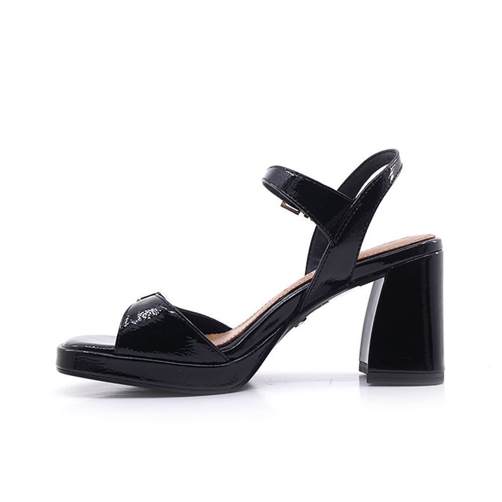 Γυναικεία πέδιλα Tamaris απο μαύρο συνθετικό λουστρ΄ίν ΄δέρμα με τακούνι στα 8cm. Kορυφαία ποιότητα, για λαμπερές εμφανίσεις που μαγνητίζουν τα βλέμματα σε κάθε σας βήμα.