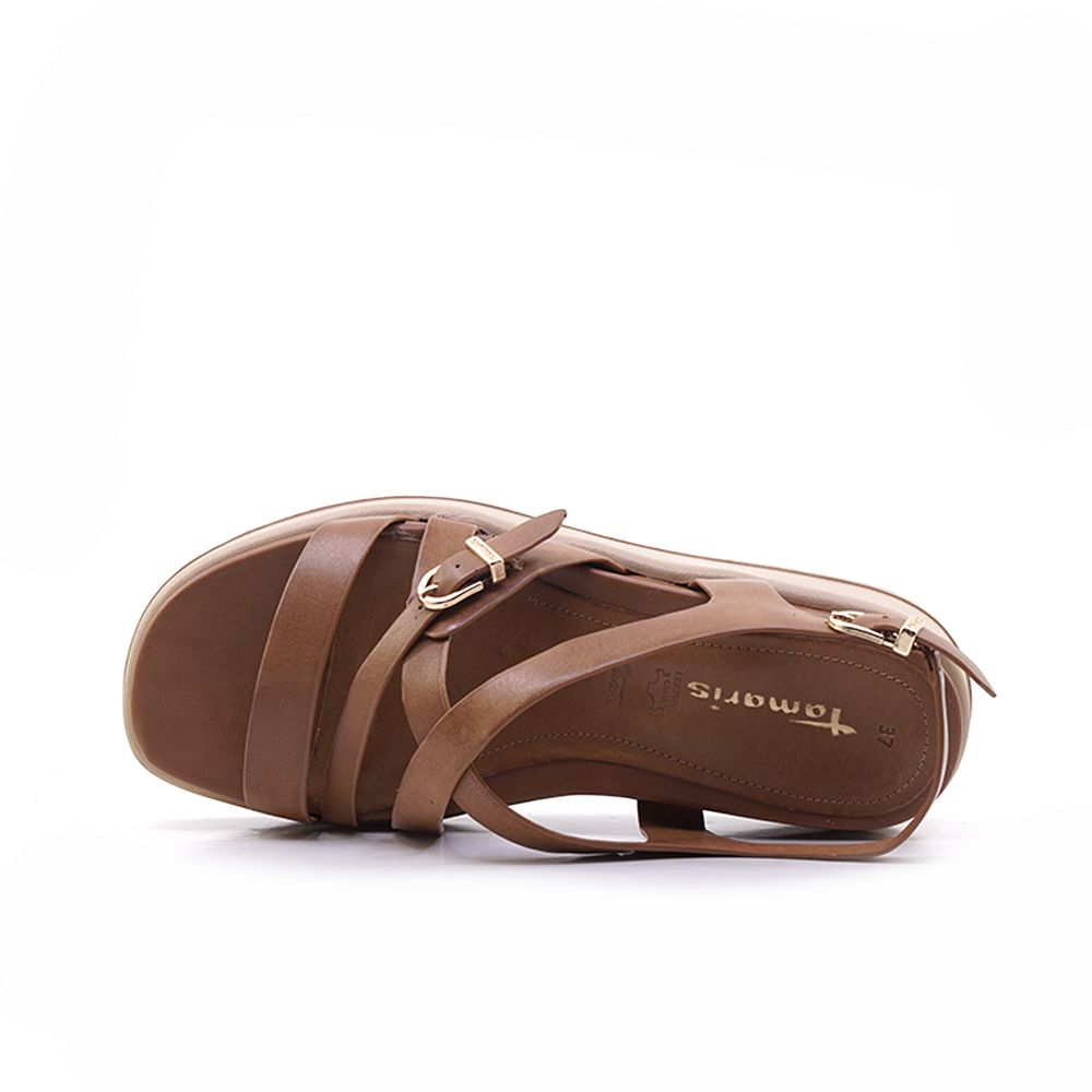Γυναικείες πλατφόρμες Tamaris απο δέρμα, με τακούνι στα 4cm. Σε κονιάκ χρώμα και λουριά που αγκαλιάζουν το κουντεπιέ για σταθερή εφαρμογή και στυλ, συνδυάζονται εύκολα και αποτελούν βασική επιλογή για γοητευτικές εμφανίσεις κάθε ώρα της ημέρας.
