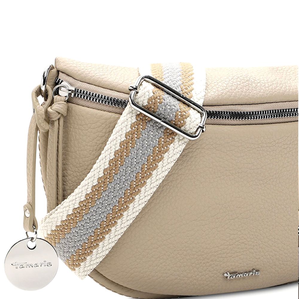Γυναικείο τσαντάκι μέσης Tamaris σε μπεζ συνθετικό δέρμα. Συνδύασε τη με glamorous looks αλλά ανάδειξε και τα casual styles σου. Διαστάσεις: Μήκος 28εκ., Πλάτος 8εκ., Ύψος 18εκ.