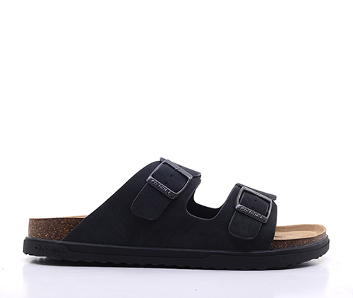 Σαγιονάρα απο συνθετικό δέρμα σε μαύρο χρώμα με φαρδιά λουριά στο κουντεπιέ. Διαθέτει σταθερό και μαλακό πέλμα για άνετο και ξεκούραστο πάτημα και εξωτερική αντιολισθητική σόλα.