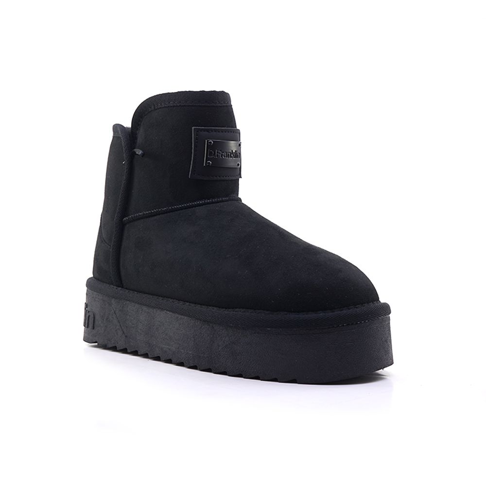 D.Franklin γυναικεία casual μποτάκια σε μαύρο χρώμα, φτιαγμένα από συνθετικό δέρμα άριστης ποιότητας με γούνα εσωτερικά και εξωτερικά. Η κατασκευή του σε συνδυασμό με την αντιολισθητική σόλα το καθιστούν κατάλληλο για τις καθημερινές σας περιπλανήσεις.