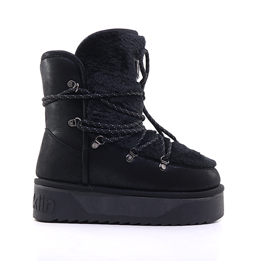 D.Franklin γυναικεία casual μποτάκια σε μαύρο χρώμα, φτιαγμένα από συνθετικό δέρμα άριστης ποιότητας με γούνα εσωτερικά και εξωτερικά. Η κατασκευή του σε συνδυασμό με την αντιολισθητική σόλα το καθιστούν κατάλληλο για τις καθημερινές σας περιπλανήσεις.