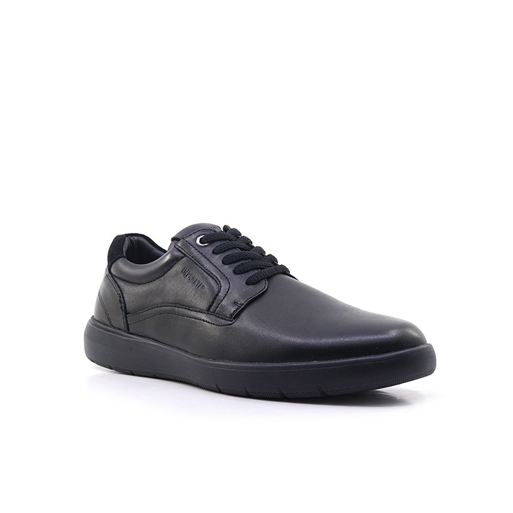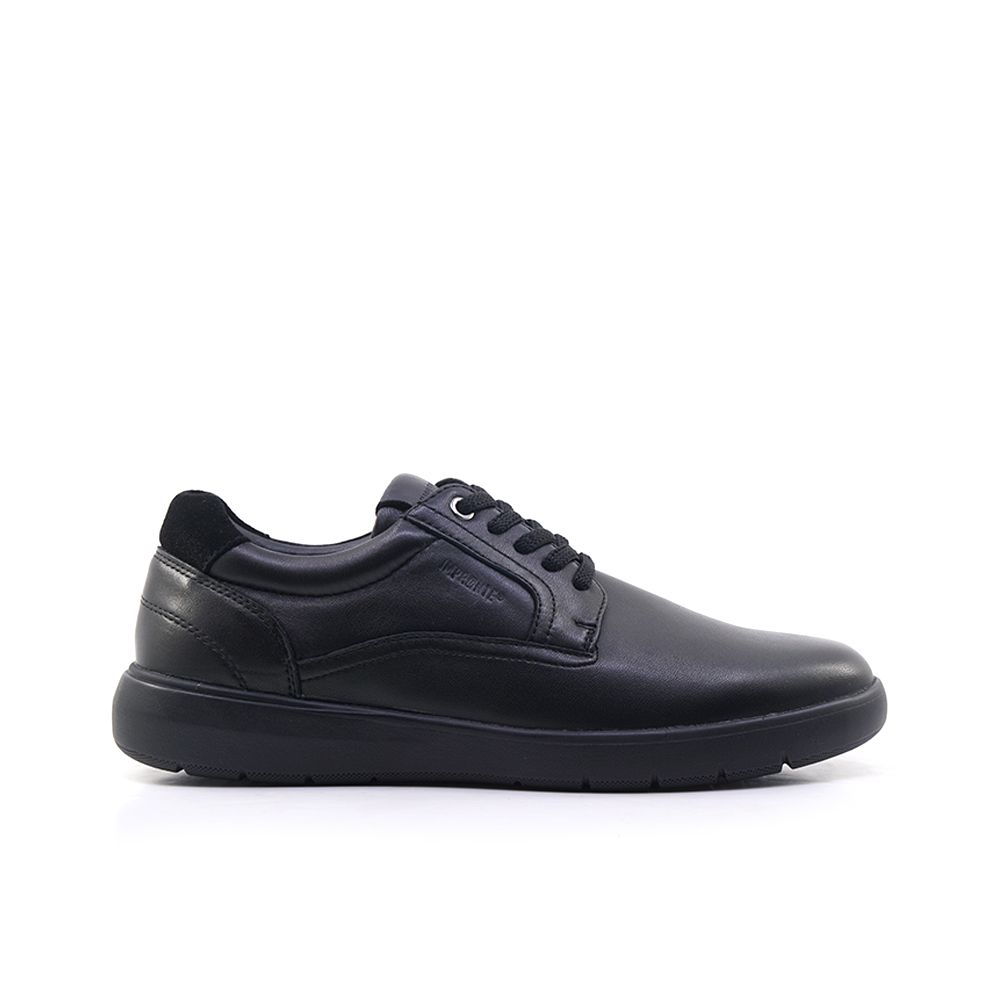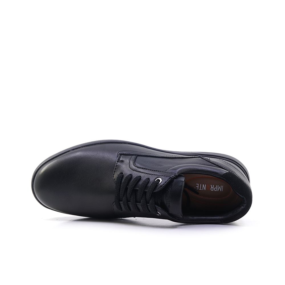 Κλασσικό ανδρικό δερμάτινο παπούτσι της εταιρείας Impronte. Σε μαύρο δέρμα για να μην χάσει ποτέ την αξία του και κορδόνια για τέλεια εφαρμογή. Η καλύτερη πρόταση για τον άνδρα που θέλει να ξεχωρίζει στις εμφανίσεις του με προτεραιότητα την ανέση.