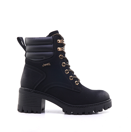 Γυναικεία μποτάκια Jeep από συνθετικό δέρμα σε μαύρο χρώμα. Κορδόνια για γρήγορη εφαρμογή και αντιολισθητική σόλα που υπόσχεται ασφάλεια και σταθερότητα σε καθε σας βήμα.
