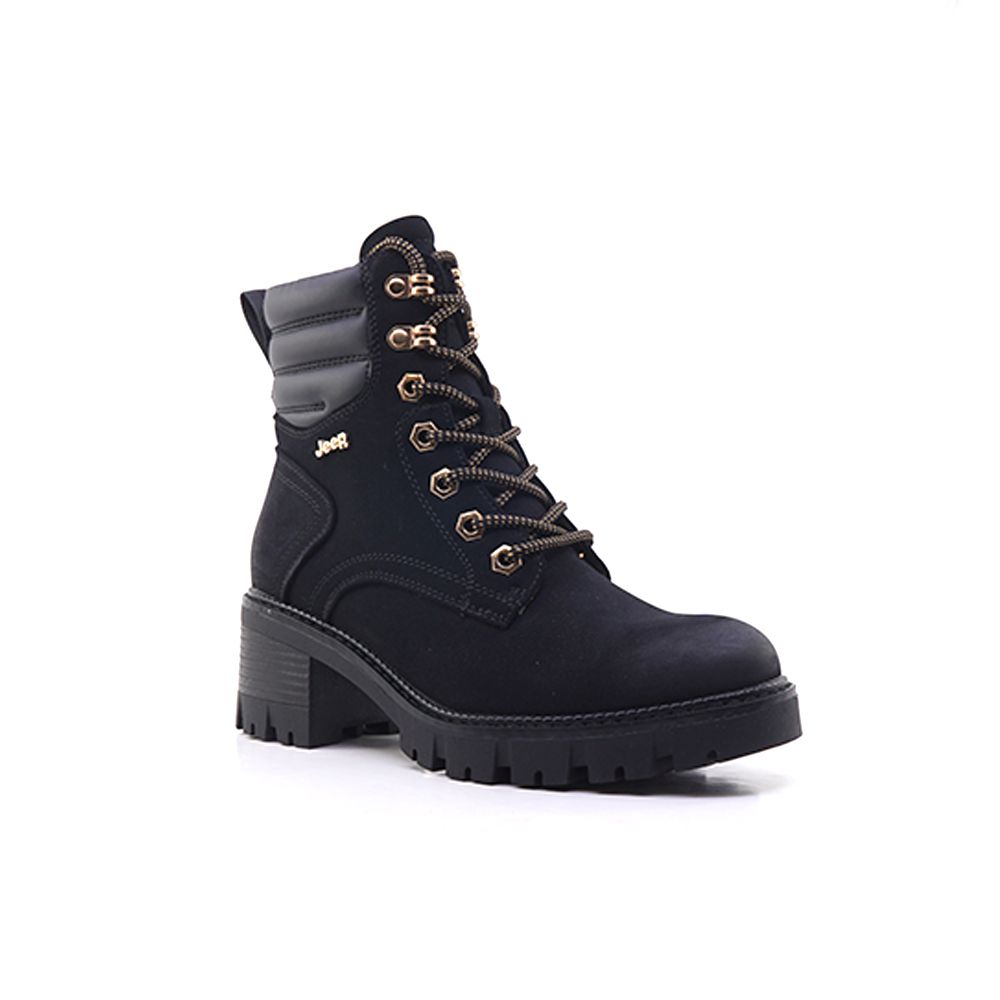 Γυναικεία μποτάκια Jeep από συνθετικό δέρμα σε μαύρο χρώμα. Κορδόνια για γρήγορη εφαρμογή και αντιολισθητική σόλα που υπόσχεται ασφάλεια και σταθερότητα σε καθε σας βήμα.