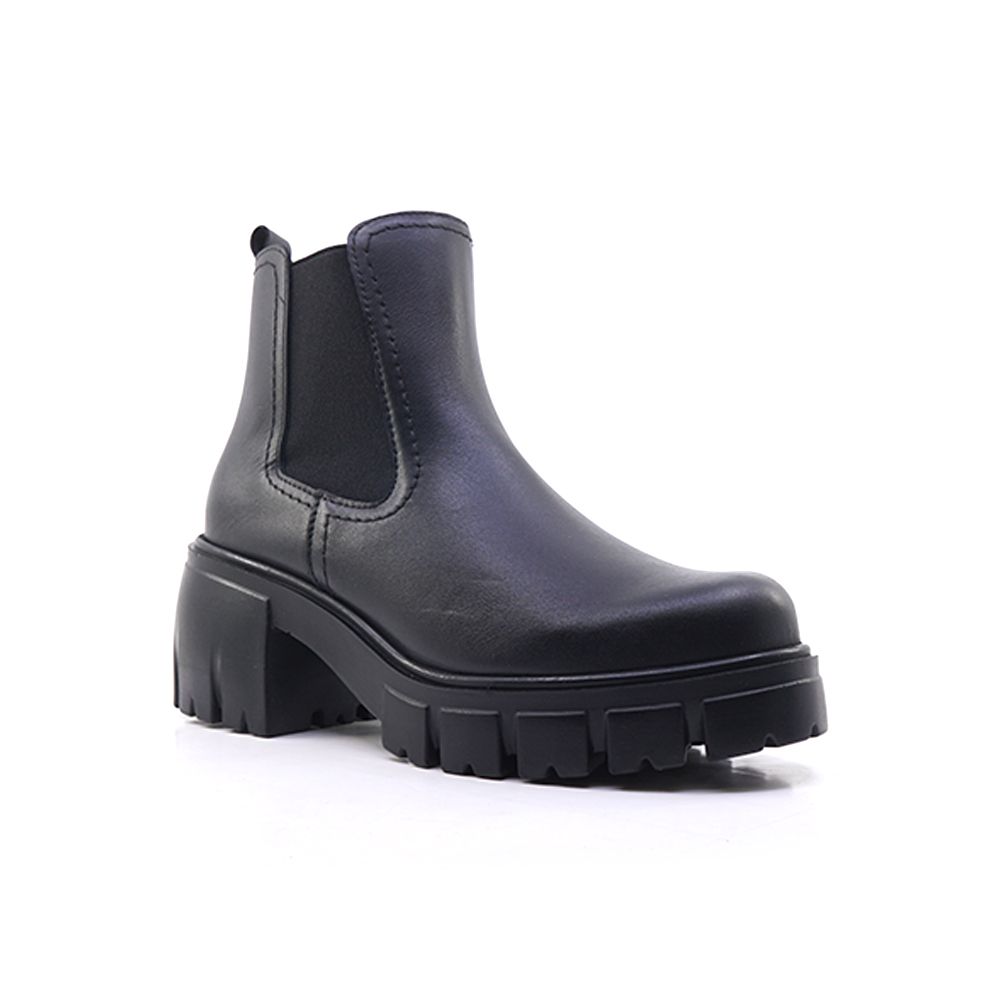 Κομψά μποτάκια LadyShoes σε μαύρο δέρμα με πάντα διαχρονικό σχεδιασμό, ιδανικα για καθημερινές και άνετες εμφανίσεις, αποτελούν την must-have επιλογή. Τακούνι 6cm.