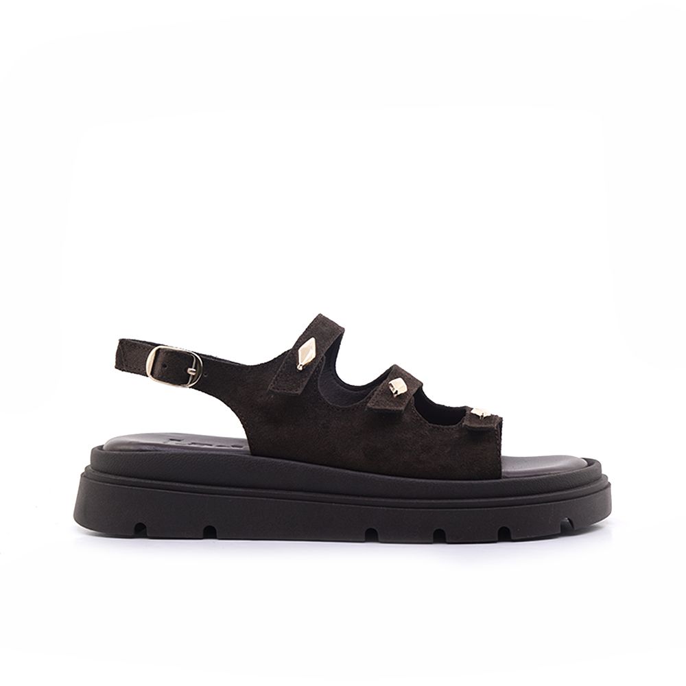 Κομψά σανδάλια LadyShoes σε καφέ suede δέρμα με θηλυκό και πάντα διαχρονικό σχεδιασμό, ιδανικα για καθημερινές και άνετες εμφανίσεις, αποτελούν την must-have επιλογή. Τακούνι 3cm.