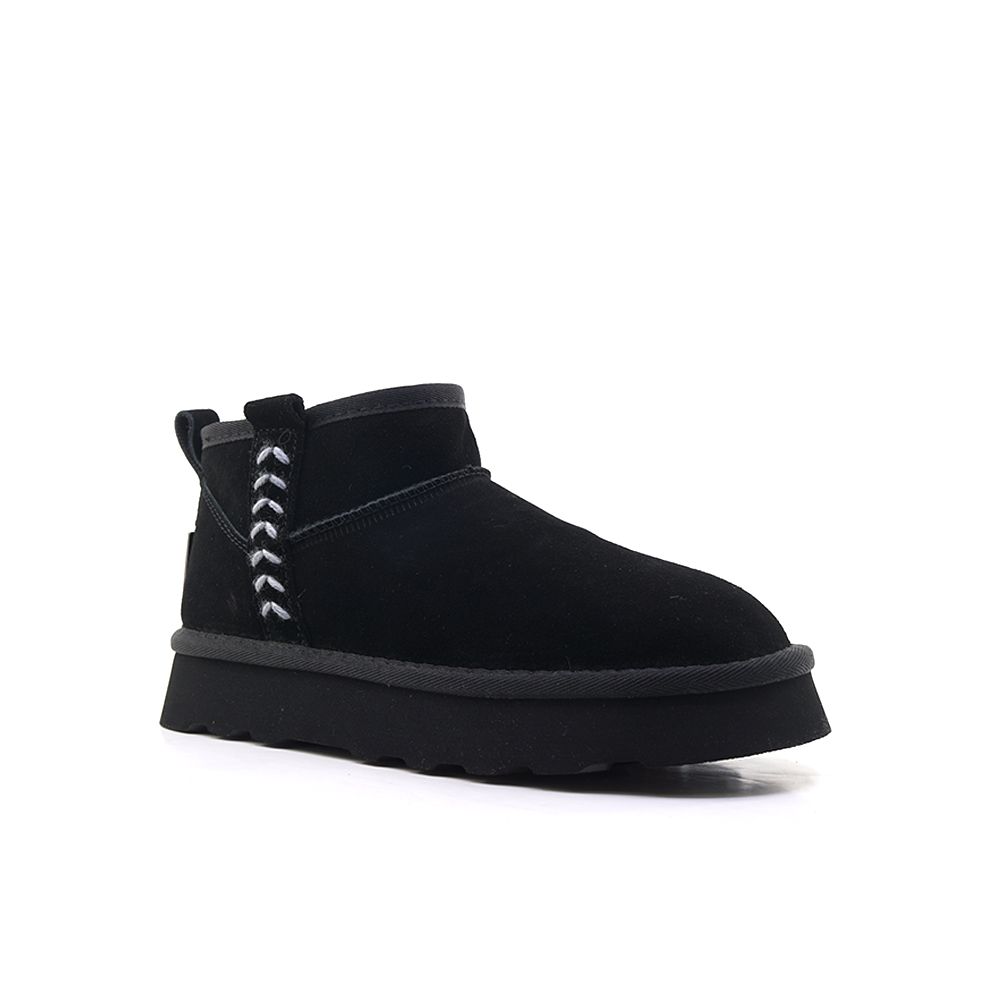Ojoo γυναικεία casual μποτάκια σε μαύρο χρώμα, φτιαγμένα από δέρμα άριστης ποιότητας με γούνα εσωτερικά. Η κατασκευή του σε συνδυασμό με την αντιολισθητική σόλα το καθιστούν κατάλληλο για τις καθημερινές σας περιπλανήσεις.